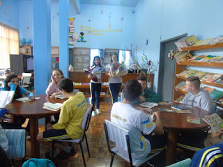 As alunas integrantes do Grêmio Estudantil Monteiro Lobato juntamente com a coelhinha da Páscoa visitaram as salas de aula para mostrar as lindas cestas de Páscoa confeccionadas pela secretária Maíra. Estas cestas serão sorteadas no dia 13/04 para quem vender e comprar a Contribuição Espontânea de Páscoa. O aluno(a) que vender mais bloquinhos ganhará um delicioso ovo de Páscoa.