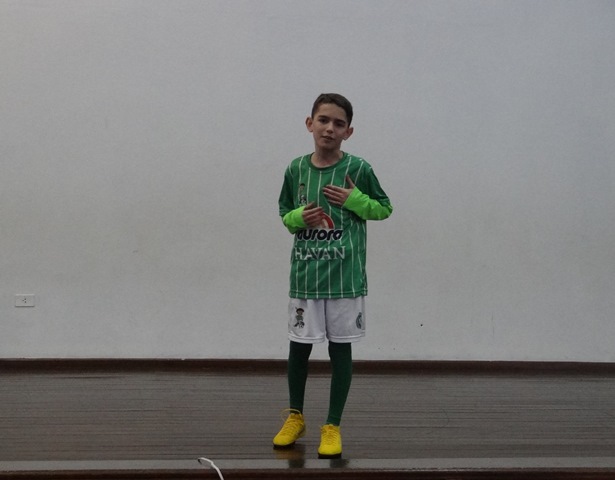 O gênero textual POEMA, trabalhado em sala de aula com os 5ºs anos se transformou em um lindo e emocionante “Recital de Poemas”, apresentado no auditório da escola para os demais colegas.